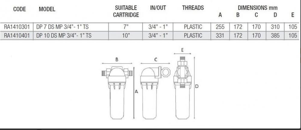 Technické parametry - Filtr Atlas SENIOR 10" DP DS - 1" s mosazným šroubením