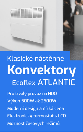 Klasické nástěnné a univerzální přímotopné elektrické koventory FENIX Ecoflex ATLANTIC jsou vybaveny přesnou elektronickou regulací a vyznačují se kvalitou zpracování, dlouhou životností, výhodným poměrem cena / výkon a mají výbornou dynamiku ohřevu. Přímotopy FENIX Ecoflex ATLANTIC jsou vhodné do objektů s trvalým i občasným užíváním. Jsou od výroby uzpůsobeny pro bezproblémový chod a ovládání přes HDO tzv. chod na noční proud.