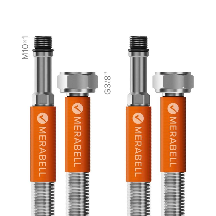 Popis produktu - Nerezové hadice k baterii MERABELL Aqua Profi G3/8” – M10x1 L 50 cm - sada (vodovodní baterie)