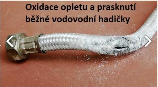 Stačí, aby se oplet dotýkal stěny nebo byl občas vystaven působení chemikálií, a rychle začne oxidovat. Samotná pryž časem ztrácí pružnost a puchří. V kombinaci s poškozeným opletem pak běžně dochází k náhlému prasknutí hadice, které často způsobí masivní vyplavení celého bytu, domu či firmy. Průtok prasklou přívodní hadicí se totiž běžně pohybuje mezi 800 až 1500 litry za hodinu!